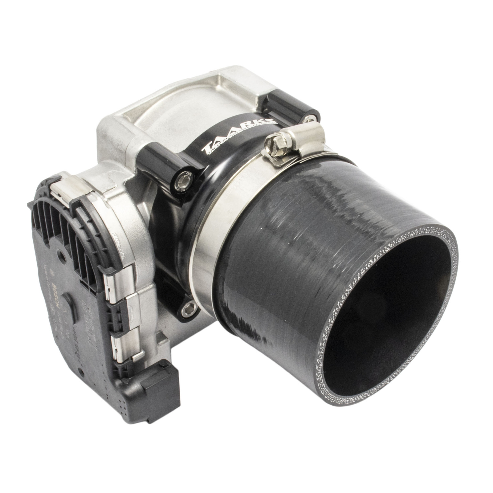 Machined from billet 6061-T6 aluminum this adapter bolts to front of the popular Bosch 74mm Electronic Throttle Body (ETB / DBW) and allows a 3.0" silicone joiner to be used. The internal bore of the adapter has been designed to ensure a smooth transition to the throttle body for maximum flow.